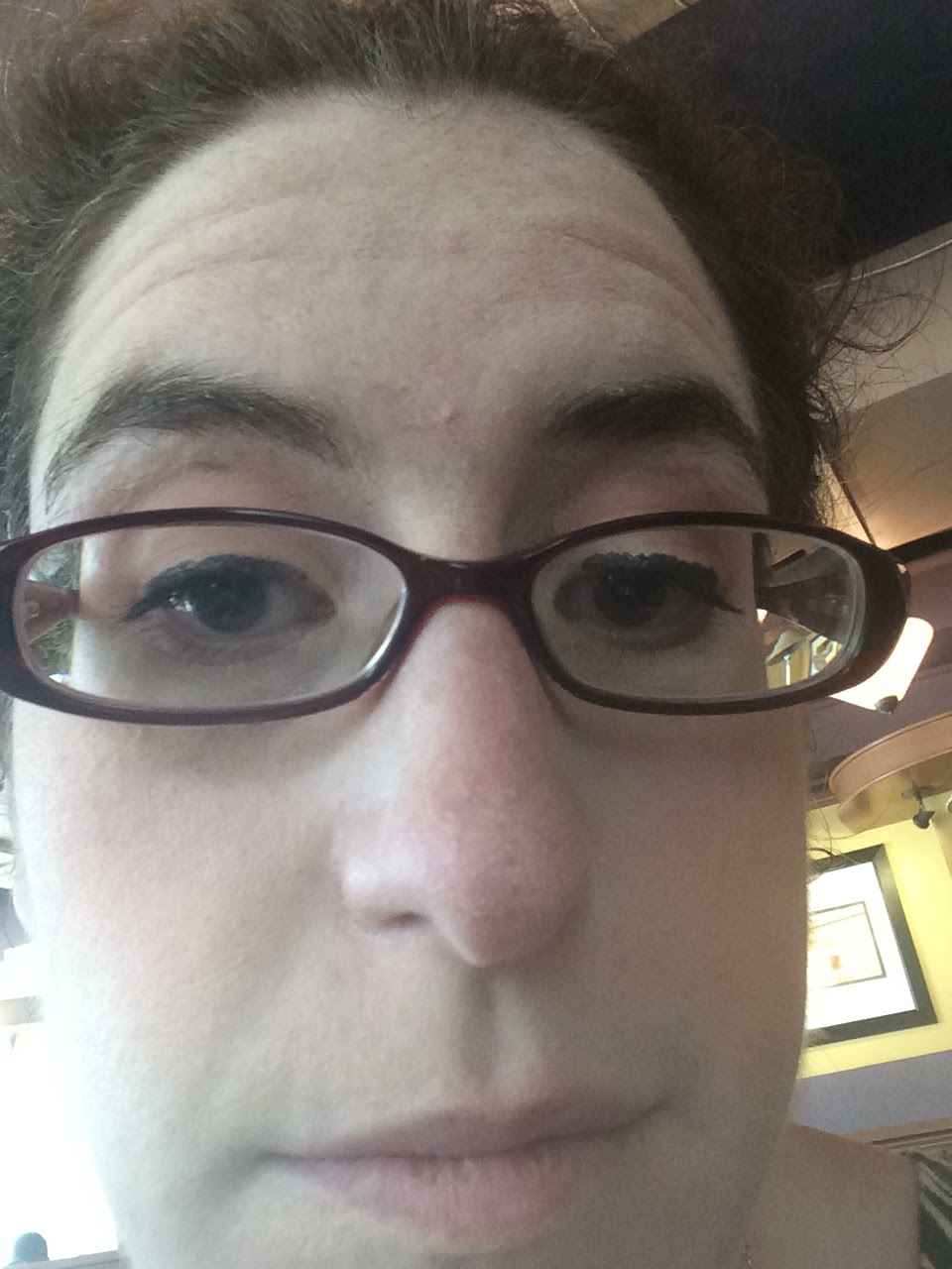 So I had some spotting on my upper lid (but I'm not sure if that was the mascara or the eyeliner (for the record I was used a gasp non waterproof mascara also by Cover Girl that I bought myself - the one in the green tube since it tends to last really well, but still not great on holding a curl) and my standard business-y eye, Chanel Coquin (I need to find a dupe of this, I'm nearing pan) and Jemma Kidd Vanity Fair (likewise, but I think that dupe will be easier to find and I have a dip but don't think I need to worry about hitting pan anytime soon). I was eating lunch so lips had worn off. Cheeks were Tarte Air Blush in Shimmering Poppy which either wore off or was less evident because of the lighting. In any case, there you have it!